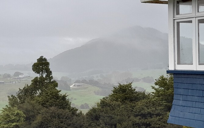 The photo, apart from the corner of our house, is of our maunga, Pukekaroro. In the middle ground is a kauri and totara. The very essence of slow living.