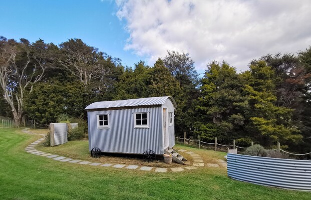 Beautifully hand crafted from macrocarpa, the Shepherd’s Hut provides a beautiful B&B unit . Nestled into a private nook amongst the native bush, this is a perfect couple’s getaway.