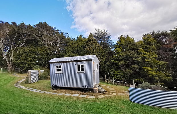 Beautifully hand crafted from macrocarpa, the Shepherd’s Hut provides a beautiful B&B unit . Nestled into a private nook amongst the native bush, this is a perfect couple’s getaway.