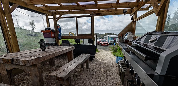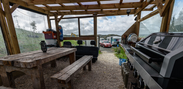 The kitchen consists of BBQ, Gas Cookers, Fridge-freezer, Storage space, Smoker and a large table with plenty of seating for the guests to enjoy their food or to play games.